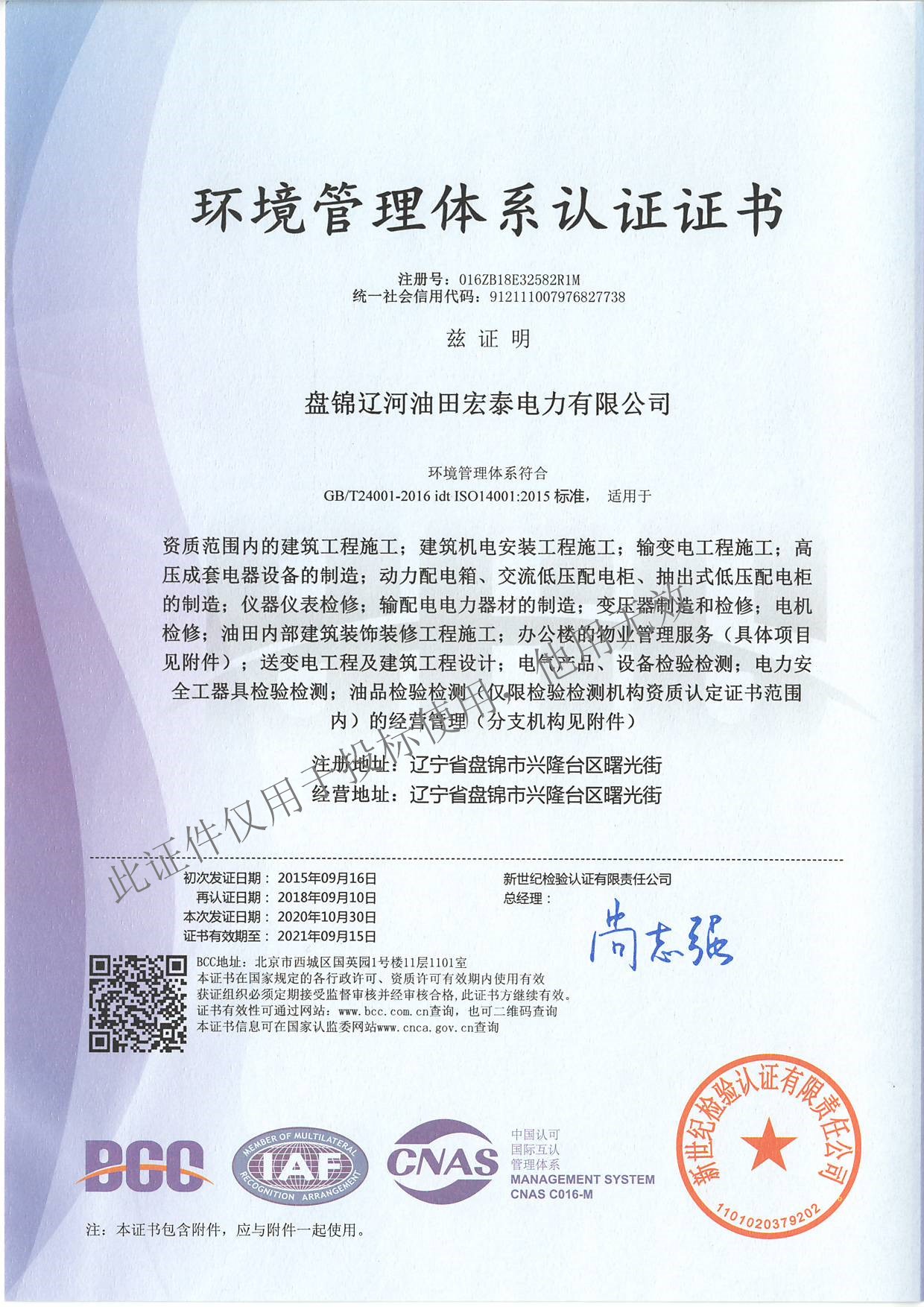 Index of /数据库文件/客户中心/于良波255/盘锦辽河油田宏泰电力有限公司/资质/单一资质/环境管理体系认证/