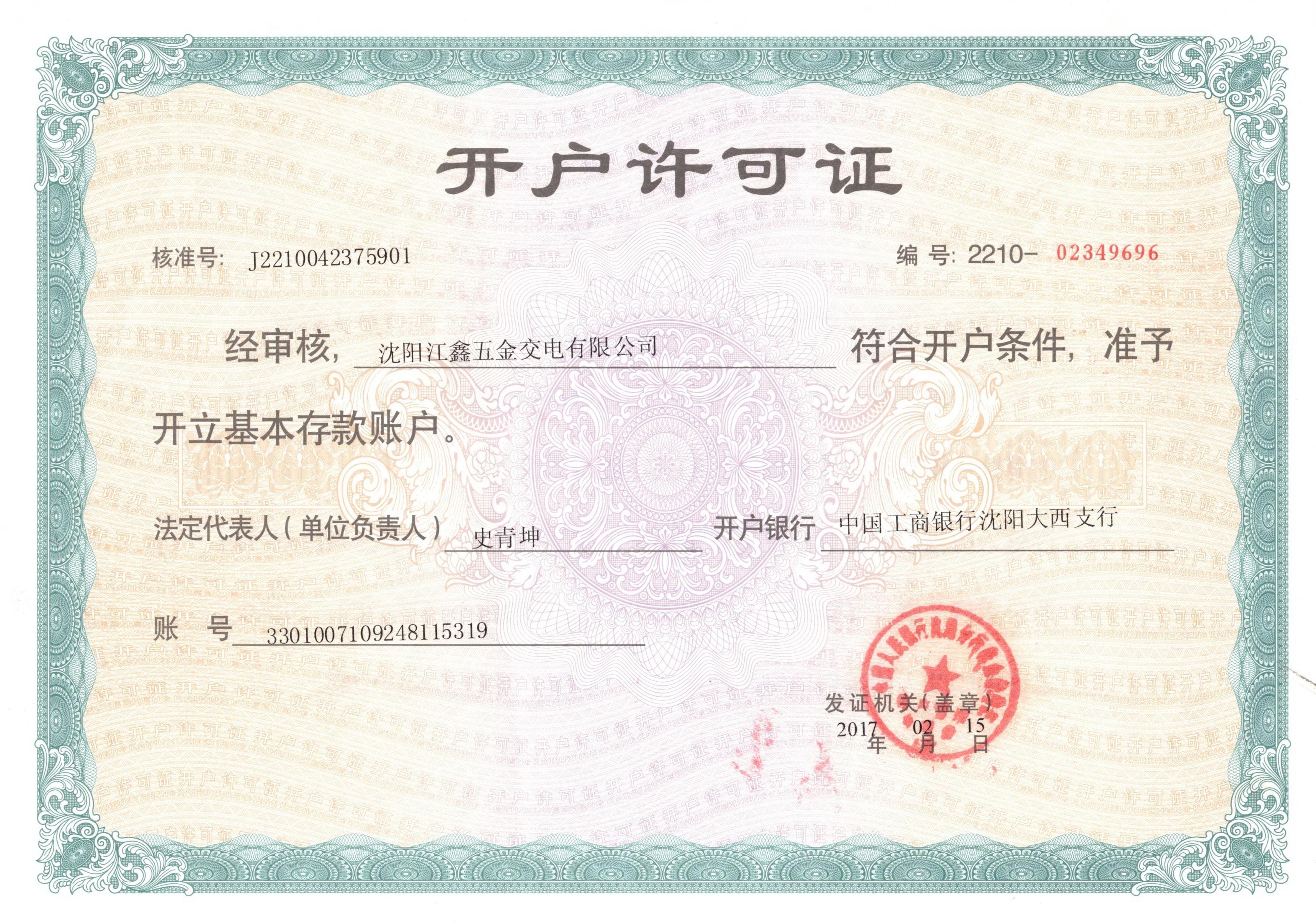 Index of /数据库文件/客户中心/史青坤290/沈阳江鑫五金交电有限公司/资质/公司资质证书/基础资质/开户许可证/