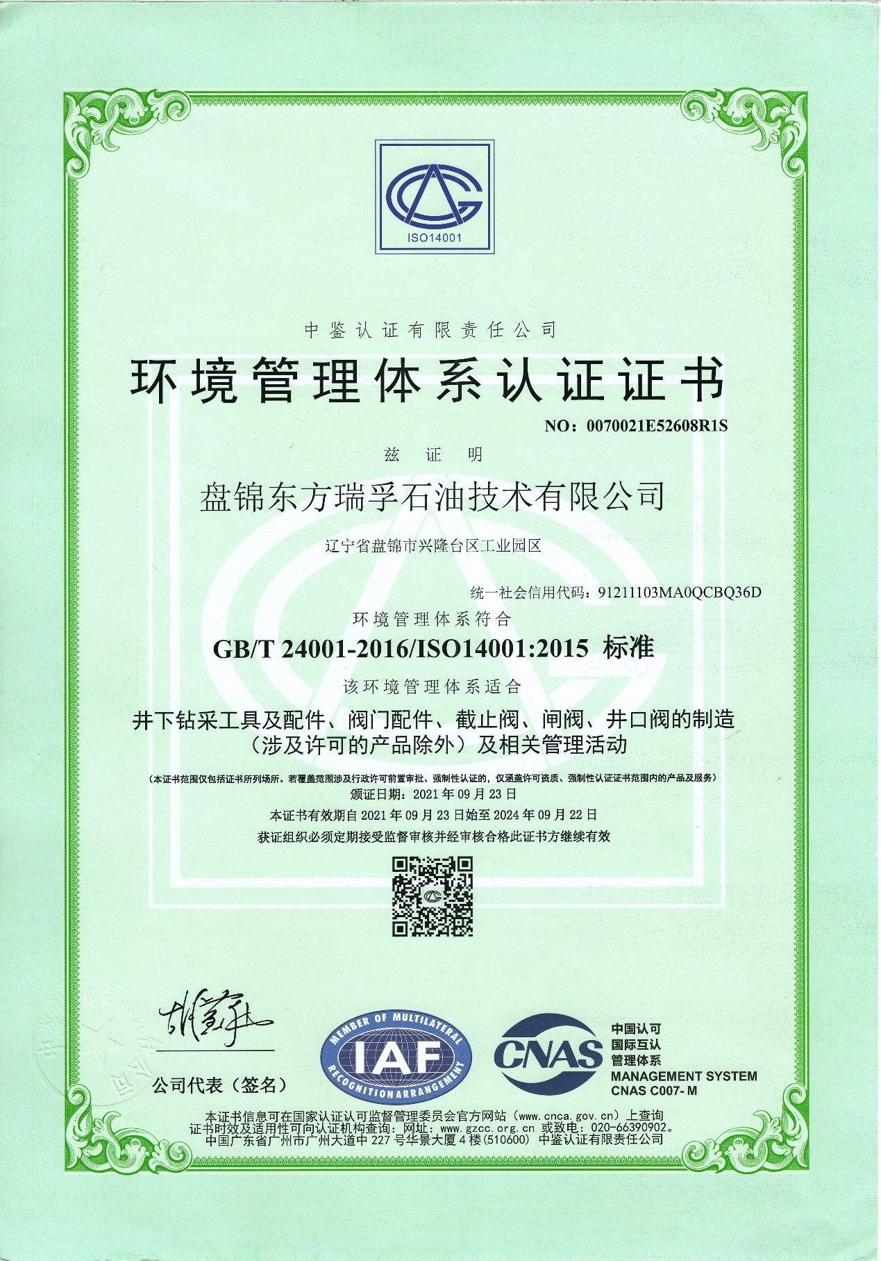 Index of /数据库文件/客户中心/周晶123/盘锦东方瑞孚石油技术有限公司/资质/单一资质/环境管理体系认证/