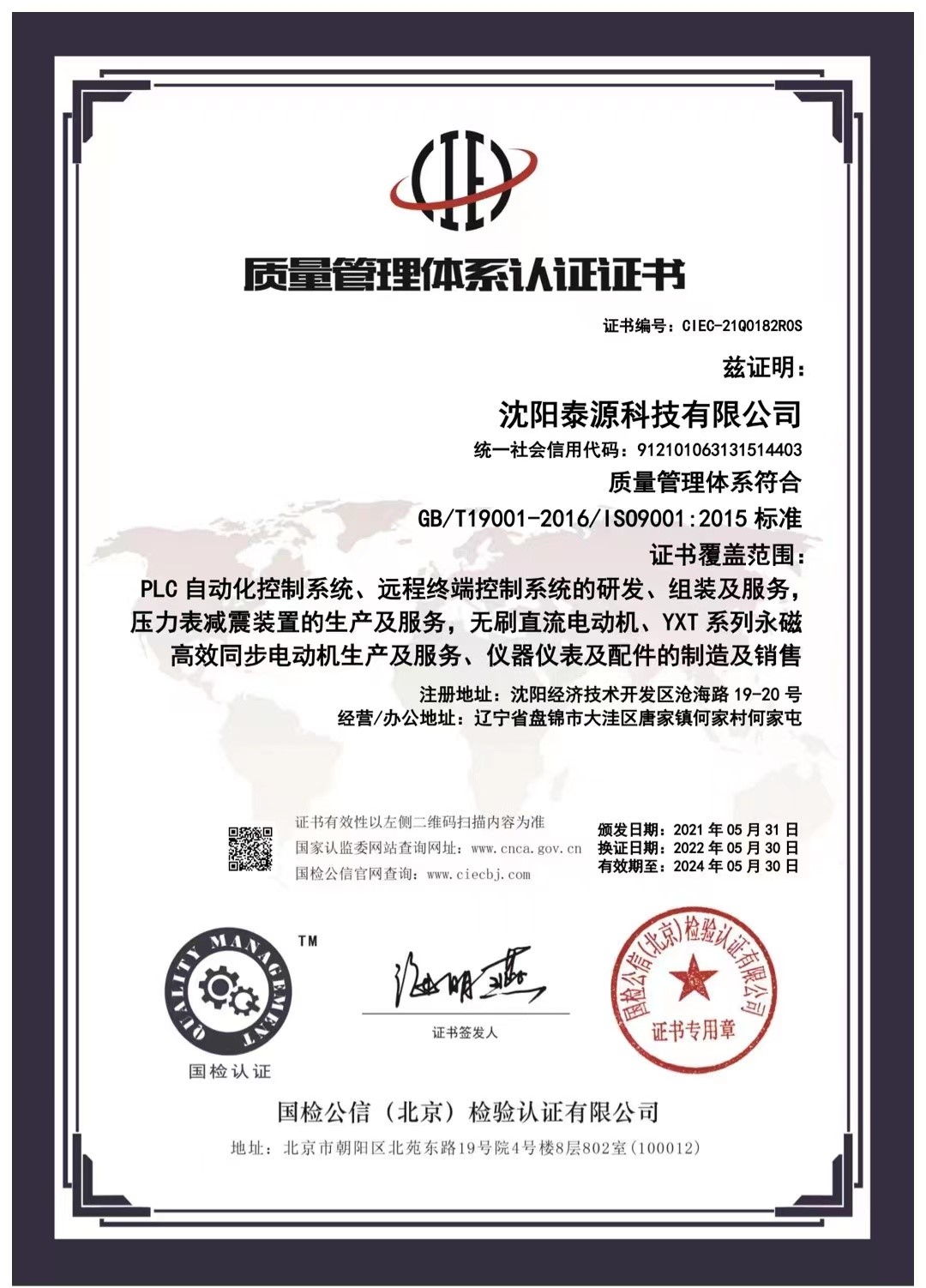 Index of /数据库文件/客户中心/马杰302/沈阳泰源科技有限公司/资质/公司资质证书/管理体系/质量管理体系认证/